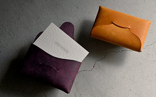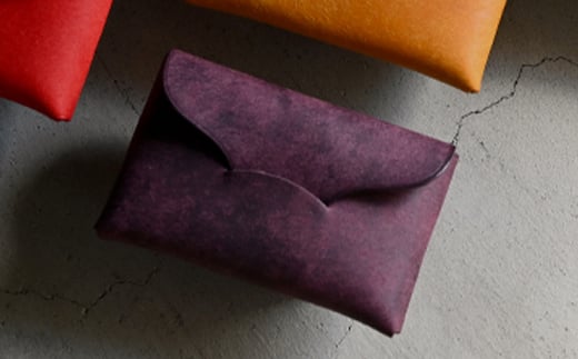 封筒のような プエブロレザーの名刺も入るシームレスカードケース 【プルーニャ(パープル系)】 F5J-1038