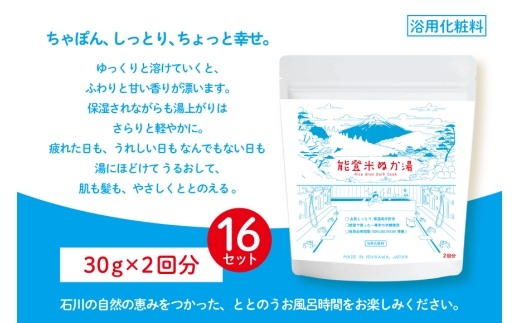 - 能登米 ぬか湯 2回分 16セット 約1ヶ月分 計32回分 [株式会社カラダック 石川県 志賀町 CN4001] 入浴剤 保湿 しっとり 風呂 バス 無添加 合成香料 防腐剤 着色料 不使用