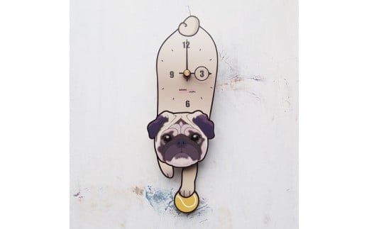 - D-97W3 パグ-犬の振り子時計毛糸玉03.RED C-CD-097A