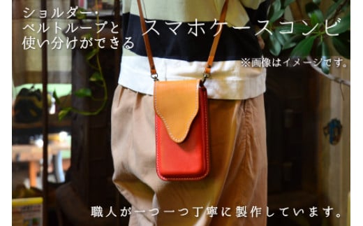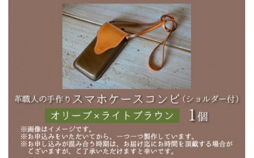- スマホケースコンビ(ショルダー付)【オリーブ×ライトブラウン】【本革 牛革 スマホカバー スマホケース スマホ ショルダー付 手縫い 雑貨 おしゃれ ファッション オリジナル レザー職人 フウネレザーファクトリー】 [BFAJ067]