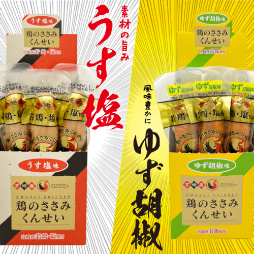 - 鶏のささみ くんせい 2種 セット 80本 うす塩・柚子胡椒 食べ比べ おつまみ スモーク チキン 燻製
