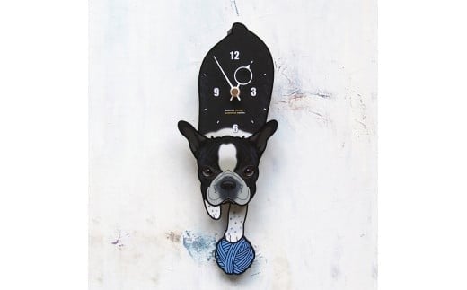 D-056W2 フレンチブル(白黒)-犬の振り子時計 毛糸玉02.PINK C-CD-006A