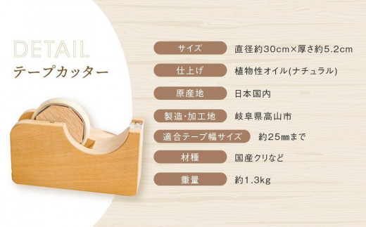 - テープカッター大(ナチュラル) [国産材・木製小物]| ギフトラッピング対応 インテリア 雑貨 文房具 かわいい おしゃれ 人気 おすすめ 新生活 高山【オークヴィレッジ】AH001VC13