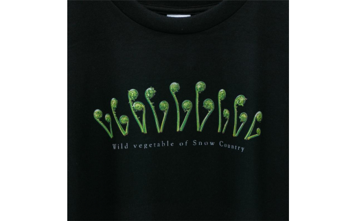 - 0327世界で唯一!着る山菜!!【こごめTシャツ・黒】綿100% Lサイズ