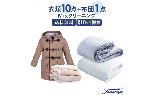 衣類10点と布団1枚のクリーニング(10ヶ月の保管サービス付き) ヤマトヤだけのMIXクリーニング