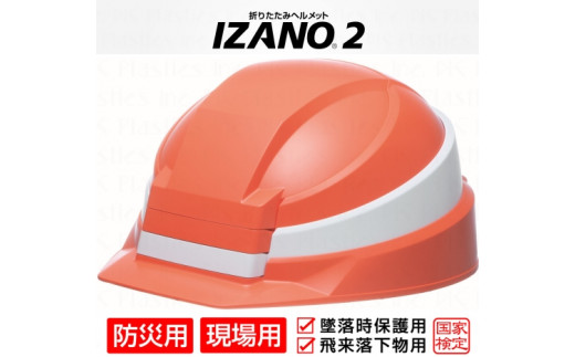 防災用折り畳み式ヘルメット「IZANO2」1個【オレンジ/ホワイトライン】持ち運びしやすい ヘルメット コンパクト 収納 防災 備蓄 防災グッズ 非常時 災害 非常用 避難 埼玉県 伊奈町