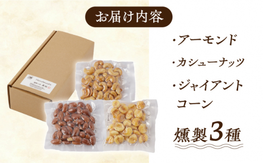 【12回定期便】燻製専門店 【ふるさと納税限定セット】 3種の燻製 詰合せ 長与町/燻製工房熏助 [EAQ026] 薫製 燻製 くんせい おつまみ 珍味 詰合せ 詰め合わせ セット スモーク 長崎県 特産品 ナッツ なっつ 定期便 定期