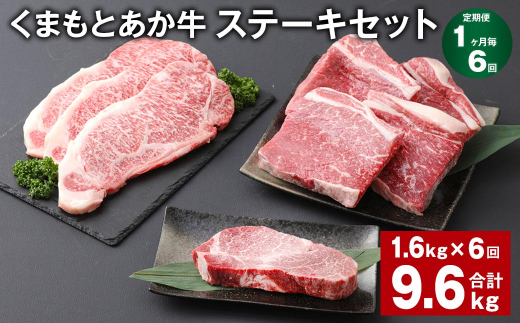 【1ヶ月毎6回定期便】 くまもとあか牛 ステーキセット 計約9.6kg(約1.6kg✕6回) 和牛 牛肉