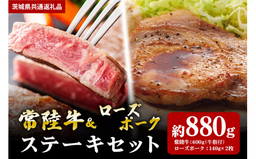 【ステーキセット】常陸牛600g・ローズポーク280g(茨城県共通返礼品)