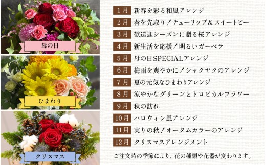 季節のアレンジメントフラワー 定期便 6ヶ月毎月お届け[FI006] / 花 花束 季節 定期便 6回 6ヵ月 生活 記念日 ギフト プレゼント お祝い 送料無料