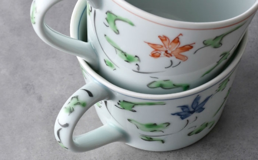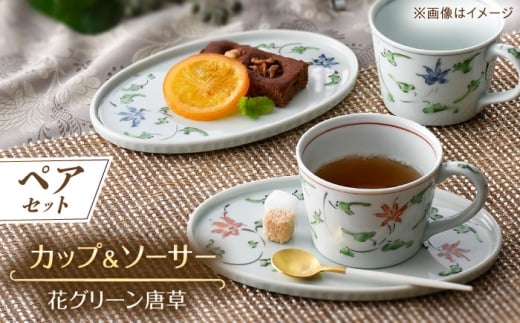 - 【波佐見焼】花グリーン唐草 カップ&ソーサー ペアセット【一夢窯】 [XE09]