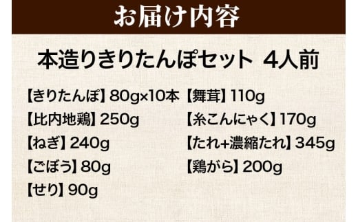 《2026年2月発送》きりたんぽ セット 本造り 4人前 (きりたんぽ 10本 比内地鶏 250g 野菜付き) 秋田県産 鍋