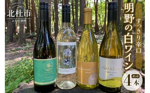 - 明野の白ワイン すっきり辛口 4本セット ワイン セット 白ワイン 4種類 シャルドネ シェンブルガー シャルマンワイン 御勅使川ワイナリー モンデ酒造 サドヤ 720ml 750ml お酒 アルコール 北杜 明野 ブドウ