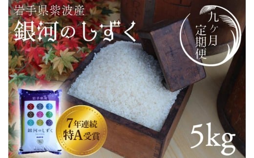 - 【9回定期便】新米 精米 白米 5kg(総計 45kg)銀河のしずく 特A受賞 ★令和7年産★ 岩手県 紫波町産 お米 おこめ ご飯 定期便 (AD037)