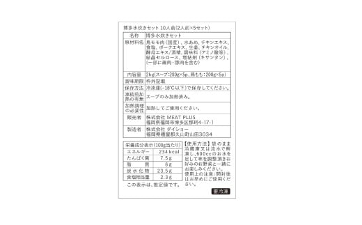 - 【訳あり!】博多水炊きセット 10人前(2人前×5セット)|福岡県 水炊き 鶏肉 濃厚 名物 mizutaki みずたき 博多 福岡 美味しい うまい 鍋 なべ 大容量 小分け 川崎町 かわさき