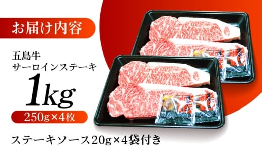 五島牛 サーロインステーキ1kg( 250g×4枚) 五島市/肉のマルヒサ[PCV055]A4 A5 国産牛 牛肉 ブランド牛 サーロイン