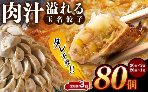 - 【 定期便 3回 】タレ不要‼ 肉汁 溢れる『 玉名餃子 』 80個 (30個×2袋、20個×1袋)| 餃子 ぎょうざ お手軽 小分け 冷凍 冷凍食品 おかず 豚肉