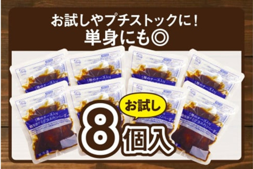 5種のチーズ入り鉄板焼ハンバーグ(デミグラスソース)8個チーズイン チーズ 5種 温めるだけ 福岡 飯塚 小分け 大容量 簡単調理 湯煎 冷凍 デミグラスソース【A-849】