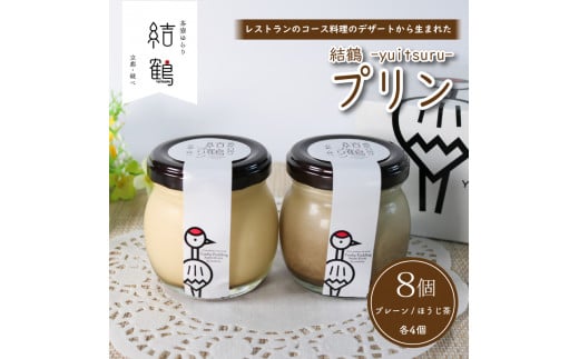 京都 無添加 結鶴プリン 90g×8個(プレーン ・ ほうじ茶 各4個)(無添加プリン 卵 プリン ほうじ茶プリン スイーツ 結鶴 食べ比べ 洋菓子 土産 プレゼント 菓子 贈り物 詰め合わせ ギフト 京都 綾部 丹波