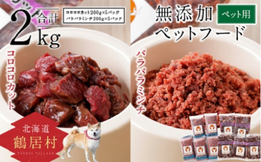 - 【北海道鶴居村】無添加ペットフード 200g×各5パック エゾシカ パラパラミンチ&コロコロカット ドッグフード ドックフード 鶴居ジビエ 低脂肪 シニア 全犬種 幼犬 老犬 北海道 鶴居村 ジビエ エゾ鹿 鹿肉