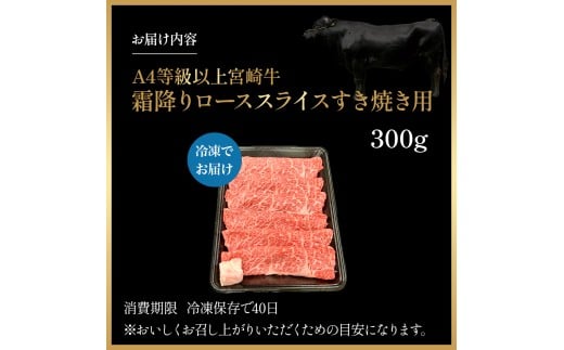 宮崎県西ノ原牧場・A4等級以上宮崎牛霜降りすき焼きロース 300g(国産 牛肉 肉 宮崎牛 黒毛和牛 お肉 すき焼き なかにし和牛 焼肉 人気 ロース 霜降り)