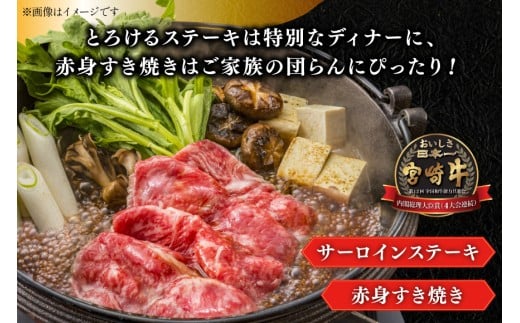 牛肉 宮崎牛 サーロインステーキ 200g & 赤身 すき焼き肉 300g 計500g [YAMATO 宮崎県 日向市 452061445] サーロイン ステーキ すき焼き すきやき 冷凍
