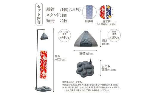 - 南部鉄器 風鈴スタンドPAW(風鈴付) 六角形 動物モチーフ 肉球 足あと 風鈴 スタンド 短冊 2枚 紗綾柄 唐草犬ネコ柄 リバーシブル オシャレ 雑貨 インテリア 伝統工芸品 [BZ004]