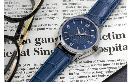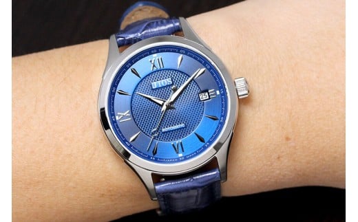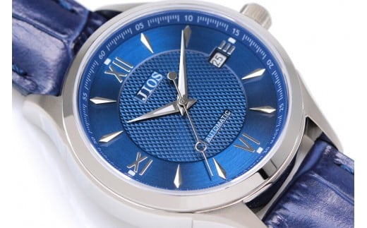 - JIOS SEIRAN 日本製 自動巻き腕時計 メンズ 男性用 革ベルト ブランド ドレスウォッチ ジオス ブルー文字盤 × シルバー針 クロコ型押しベルト(青)