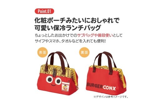 - がま口型ランチバッグ バーガーコンクス(ポテト)< skater>KGA1_4973307528712 ランチバッグ 保冷 保温 Wファスナー式 ポケット付き 内側アルミ蒸着仕様 バーガーコンクス BURGER CONX 男の子 女の子 奈良県 奈良市 なら 5-124
