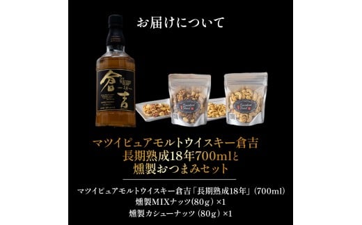 - マツイピュアモルトウイスキー倉吉 長期熟成18年700mlと燻製おつまみセット ウイスキー おつまみ セット 燻製 ナッツ お酒 酒 アルコール 鳥取県 倉吉市