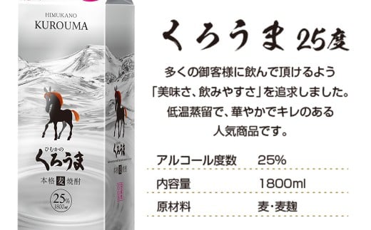 - 神楽酒造の定番焼酎 麦焼酎くろうま25度 1800mlパック3本<1.8-31>