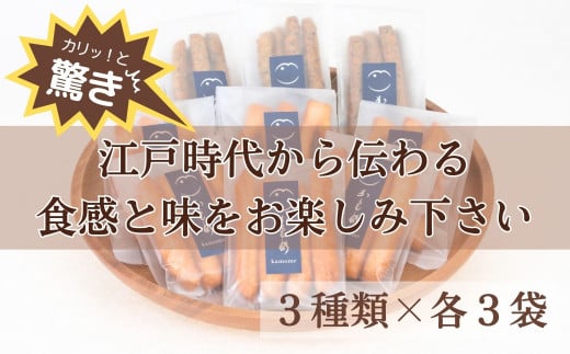 - 【G0505】食べて納得!こだわり素材で仕上げた伝統の【あぶら菓子】_3種類 各3袋