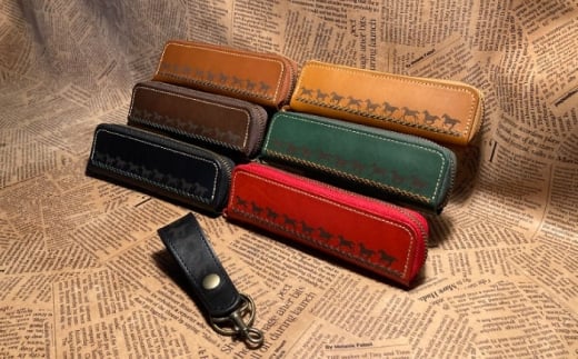 - 馬九いくキーリング(ブラック)&馬九いくラウンドファスナーペンケース(ブラウン) 栗東市 / 株式会社ブルズエフ [BIAU091]