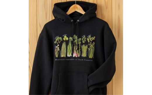 0339世界で唯一!着る山菜!!【山菜図鑑パーカー・黒】裏起毛 Sサイズ