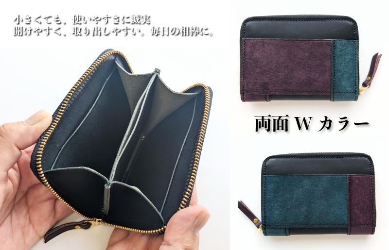 099H4028 板谷革工房 本革小銭入れ「一針の誠実」(黒×紫×青緑)