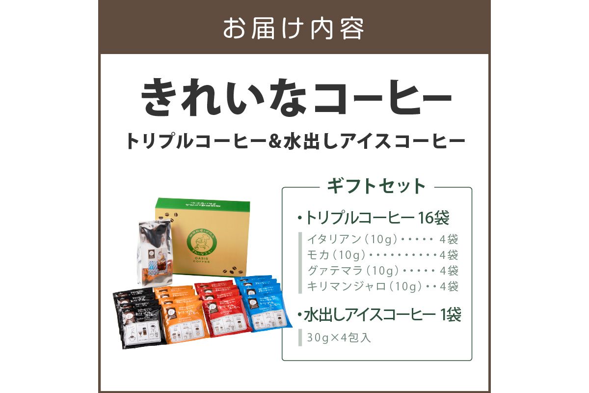 - 【A3-091】★特許製法★きれいなコーヒートリプルコーヒー16袋&水出しアイスコーヒー1袋 ギフトセット