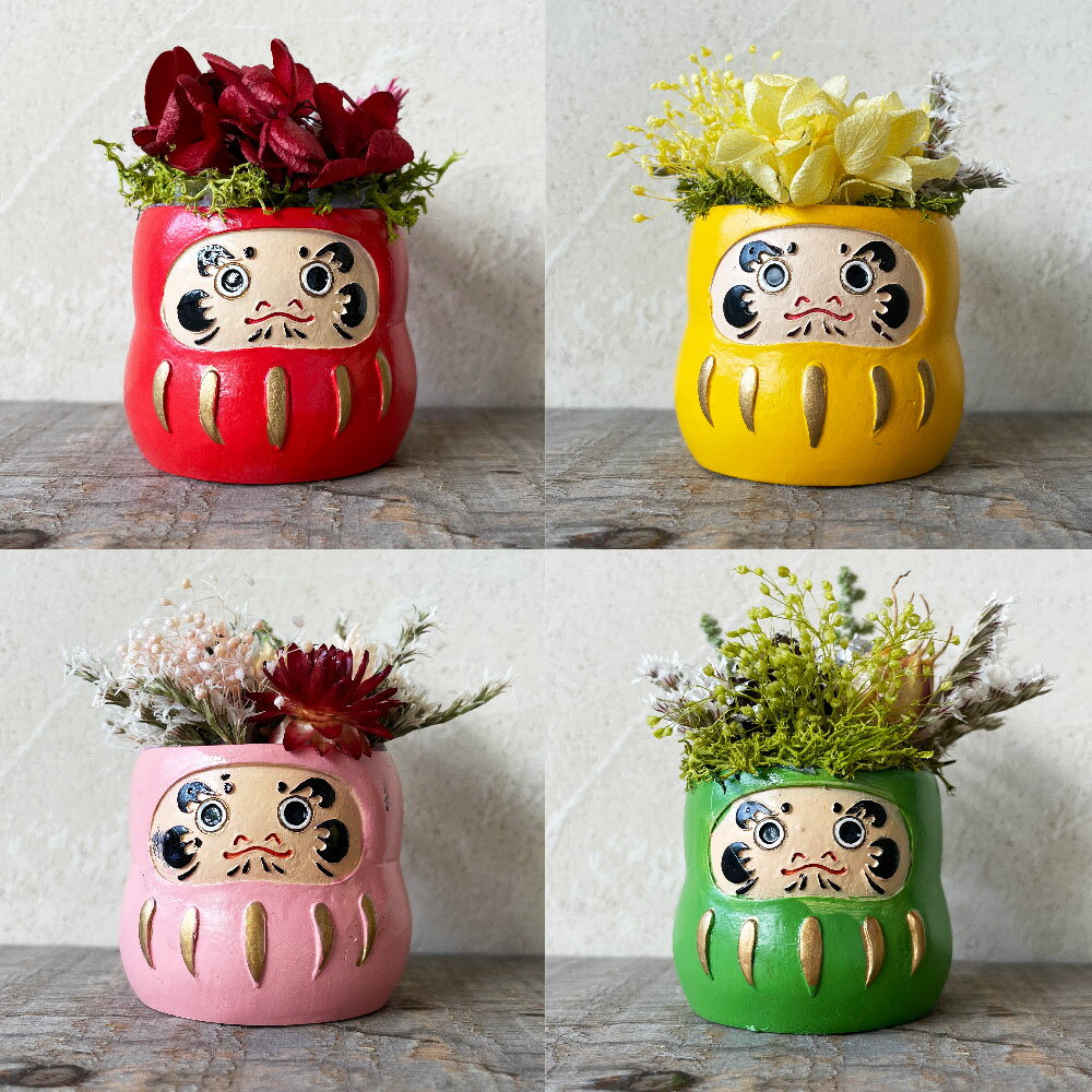 【ふるさと納税】【選べる!】開運だるま 全8色(赤・黄・ピンク・緑・青・紫・金・白) ダルマ 達磨 1個あたり70g 約7×約7×約7cm 陶器 ドライフラワー お花 インテリア 置物 縁起物 金運 家内安全 雑貨 お祝い 贈り物 ギフト 竹田市 送料無料