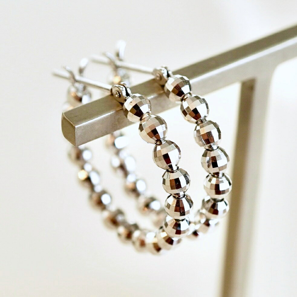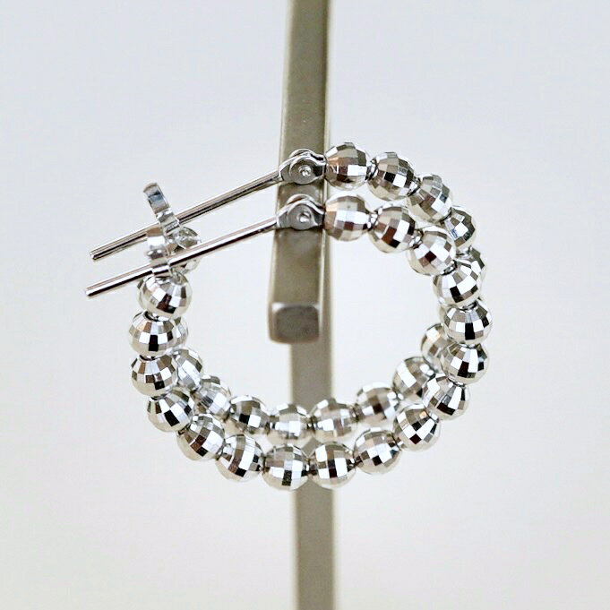 【ふるさと納税】ふるさと納税 ミラーボール フープピアス ジュエリー イヤーカフ 18金 ジュエリーケース付 保証書付 アクセサリー おしゃれ ギフト プレゼント 山梨県 昭和町 母の日K14WG ホワイトゴールド ミラーボール フープ ピアス 保証書付 KO-0016SWAD013