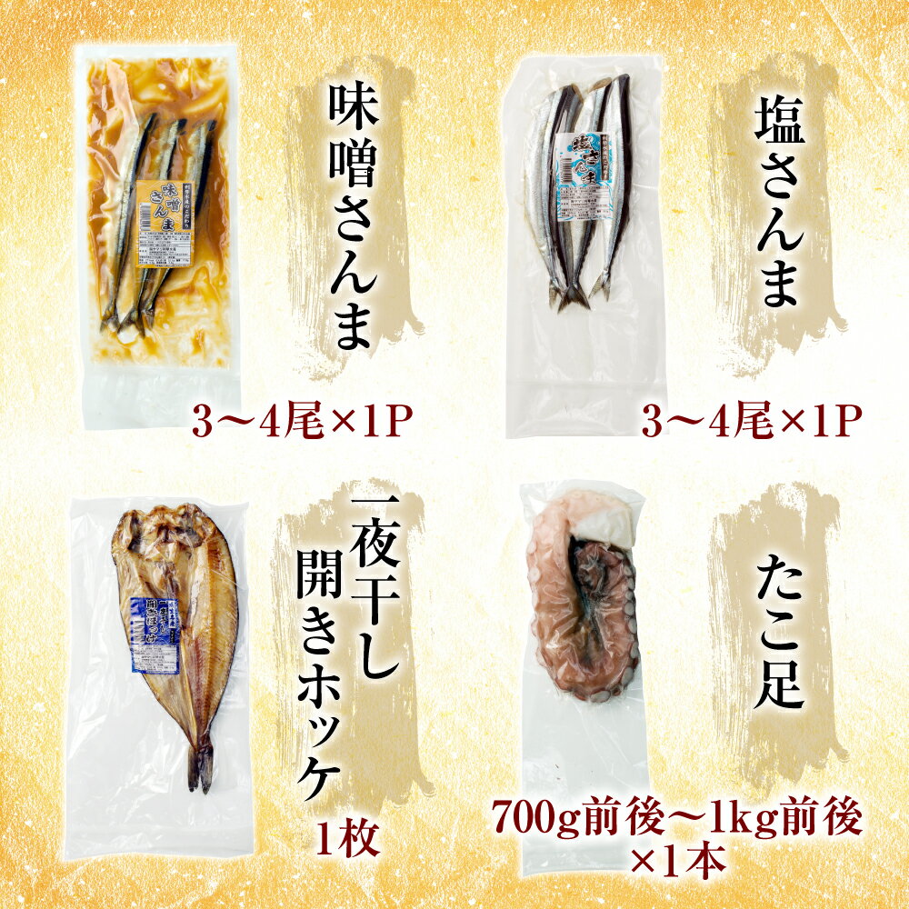 - 【ふるさと納税】<年内配送可> 海鮮セット A 塩さんま 味噌さんま サンマ 秋刀魚 たこ足 たこ たこ タコ 蛸 一夜干し 干物 ほっけ ホッケ 紅鮭 切り身 鮭 サケ さけ 柳カレイ かれい たら タラ 鱈 開き こまい コマイ 魚 さかな サカナ 北海道 C-30011