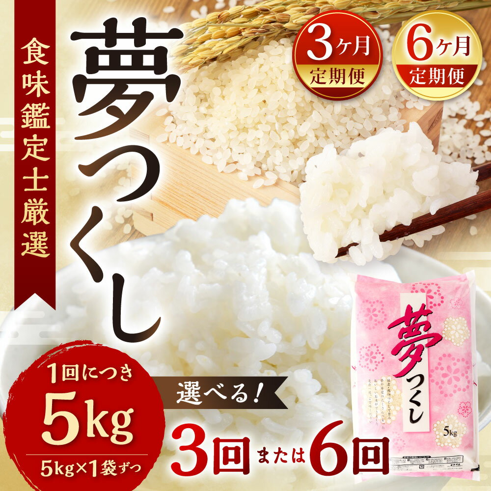 【ふるさと納税】【定期便】精米 食味鑑定士厳選 夢つくし 選べる定期回数 【3ヶ月定期便】総合計15kg(5kg×1袋×3回) / 【6ヶ月定期便】総合計30kg(5kg×1袋×6回) 福岡県産 お米 精米 白米 単一原料米 新米 令和7年産 国産 九州 定期便 福岡県北九州市