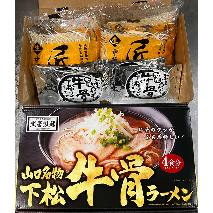 - 【ふるさと納税】No.220 下松・牛骨ラーメン4食入り 650g / めん 麺類 本格ラーメン 至福の一杯 牛コツ 送料無料 山口県