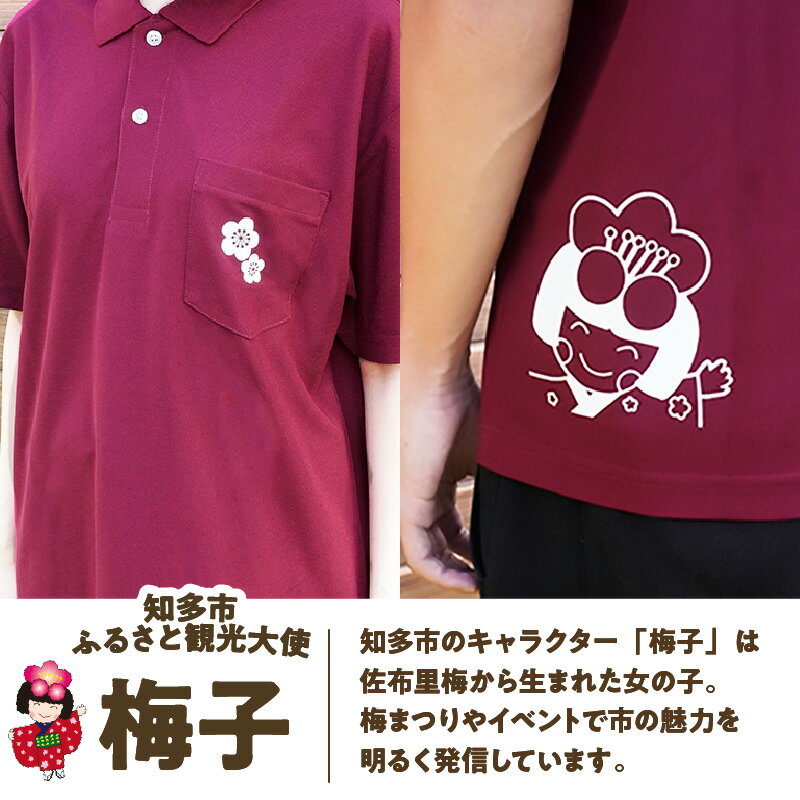 - 【ふるさと納税】梅子 ポロシャツ バーガンディ【選べるサイズ M・L】半袖 ポリエステル100% 鹿の子 ユニセックス 男女兼用 バーガンディ 赤紫 ワイン色 トップス ファッション 衣服 ポロシャツ 服 イラスト入り 知多市特産品 送料無料