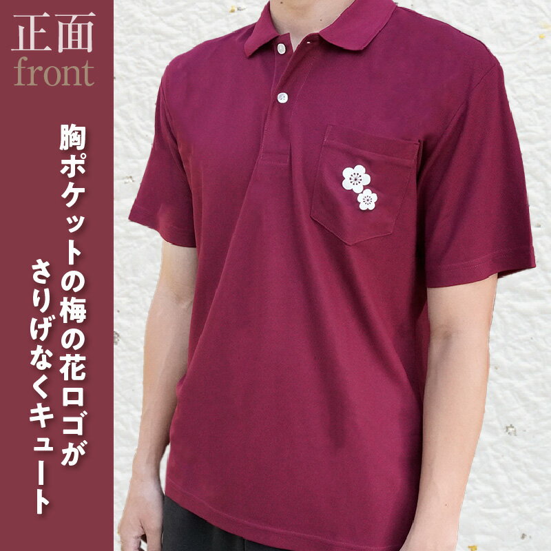 【ふるさと納税】梅子 ポロシャツ バーガンディ【選べるサイズ M・L】半袖 ポリエステル100% 鹿の子 ユニセックス 男女兼用 バーガンディ 赤紫 ワイン色 トップス ファッション 衣服 ポロシャツ 服 イラスト入り 知多市特産品 送料無料