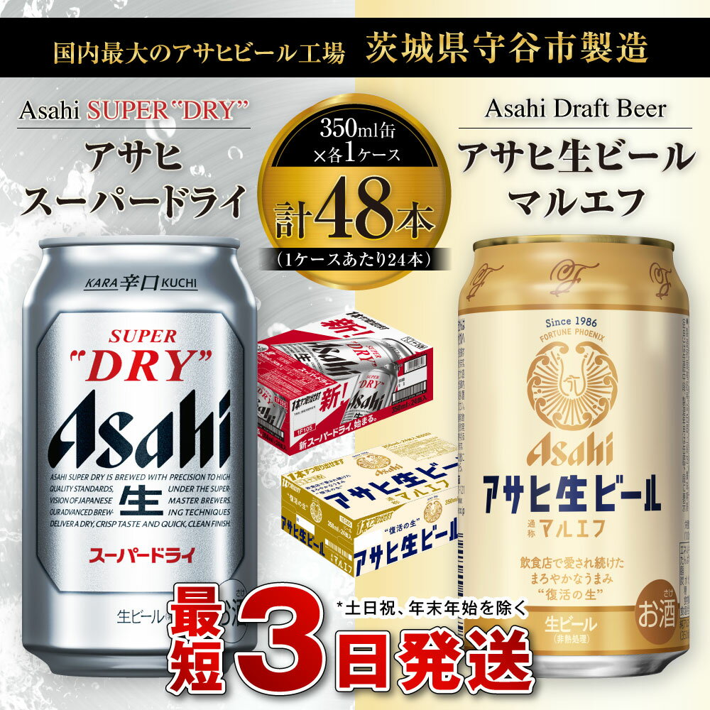 【ふるさと納税】アサヒ スーパードライ 350ml 24本入 + アサヒ 生ビール マルエフ 350ml 24本入 各1ケース【ビール 飲み比べ セット お酒 麦酒 Asahi アルコール 缶ビール 辛口 生ビール 缶 ギフト 内祝い お歳暮 茨城県守谷市】