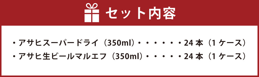 - 【ふるさと納税】アサヒ スーパードライ 350ml 24本入 + アサヒ 生ビール マルエフ 350ml 24本入 各1ケース【ビール 飲み比べ セット お酒 麦酒 Asahi アルコール 缶ビール 辛口 生ビール 缶 ギフト 内祝い お歳暮 茨城県守谷市】
