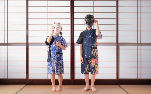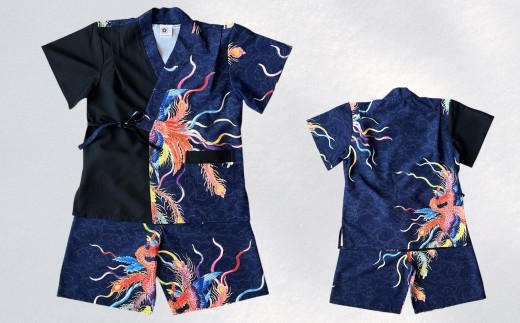 - [KUTANI×KIMONO] キッズ甚平 上下2点セット 鳳凰(サイズ:130-140cm)