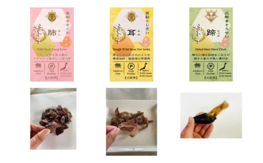 - 島根県益田産ジビエ使用 鹿・猪・内臓ジャーキー6種食べ比べセット〈Pet-sama〉【ジビエ 犬用 ペット おやつ ごほうび トッピング 無添加 国産】