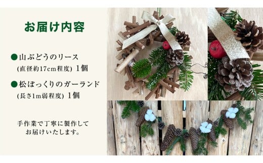 - 【 12月 発送開始 】 クリスマス に最適! フィノスの森 山ぶどうの リース と松ぼっくり の ガーランド 付き クリスマスリース クリスマスツリー アレンジ インテリア 日用品 飾り [BI007tu]