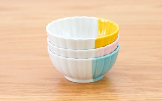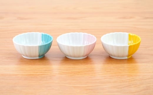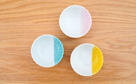 - 【波佐見焼】花しのぎ 丸小付 ハーフカラー 3色セット【団陶器】 [PB202]