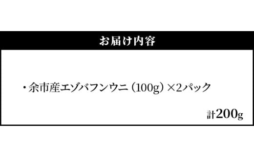 【先行予約:2026年6月以降発送】北海道余市町 極上 塩水うに エゾバフンウニ 200g 100g×2パック 雲丹 ウニ 塩水パック 発祥地の逸品 口の中でとろける濃厚な味わい